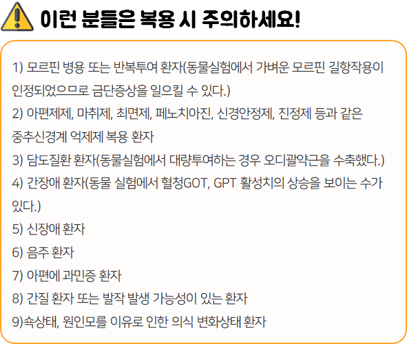 - 다음 환자는 복용 전 전문가 or 의사와 상담 후 복용하시길 바랍니다.