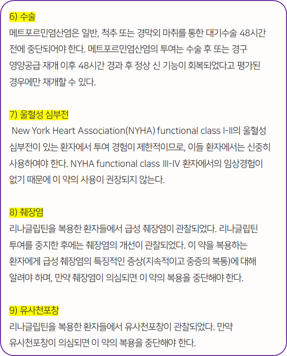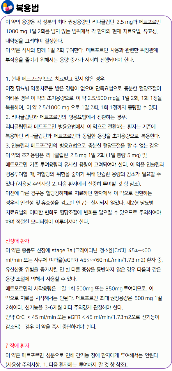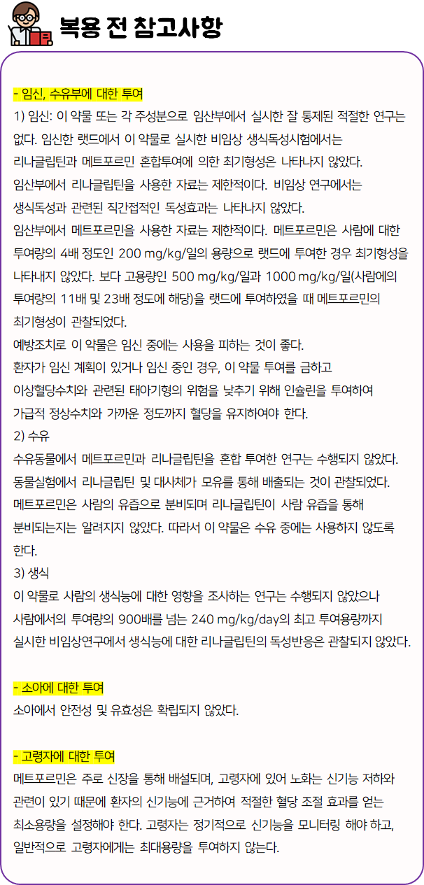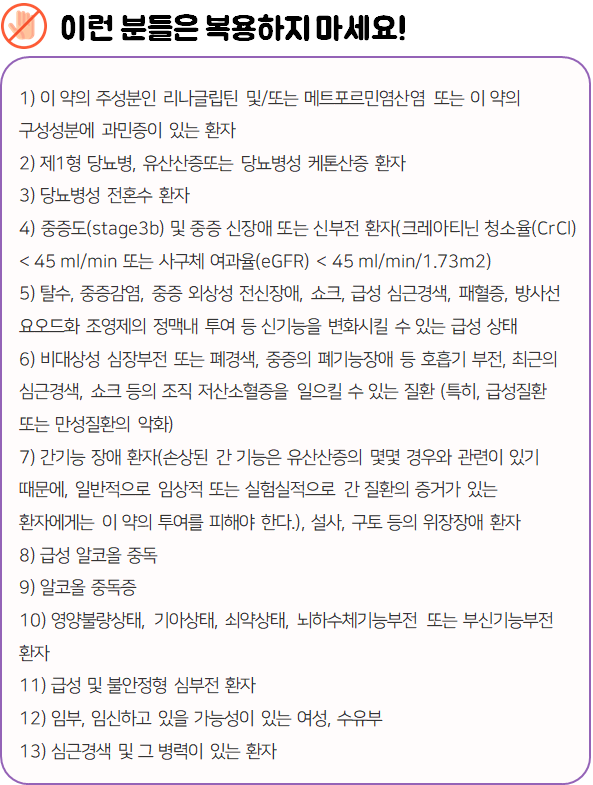트라젠타 듀오정 2.5/500 복용 시 주의해야 할 사항