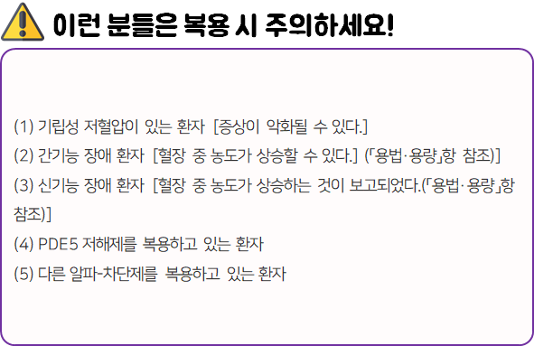 - 다음과 같은 사람은 복용 시 위험할 수 있으므로 복용하지 마시길 바랍니다.