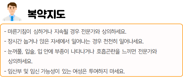 또한 복용 중 부작용 등의 이상반응이 나타날 시 즉시 복용을 멈추고, 전문가 or 의사와 상담하신 후에 복용 지속 여부를 결정하시는 것이 좋습니다.