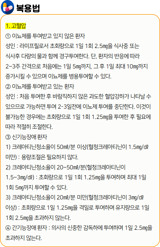 Ramipril : 순환기계질환 > 고혈압 치료제 > 안지오텐신 전환효소 억제제 (ACEI) >