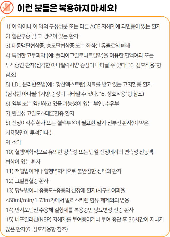 - 다음 환자는 복용 시 위험할 수 있으므로 복용하지 마시길 바랍니다.