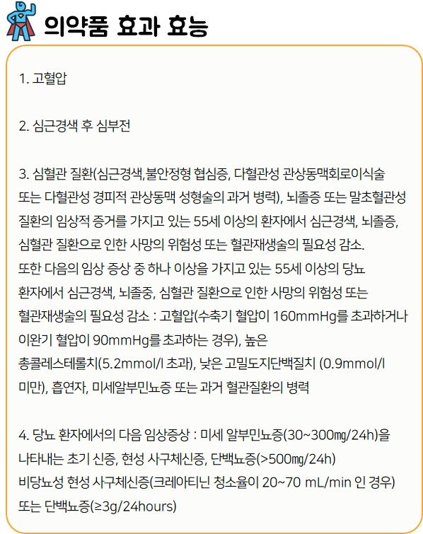 이 의약품은 혈관을 확장하고 심장부담을 감소시켜 혈압을 강하시키는 약이니 참고하시길 바랍니다.