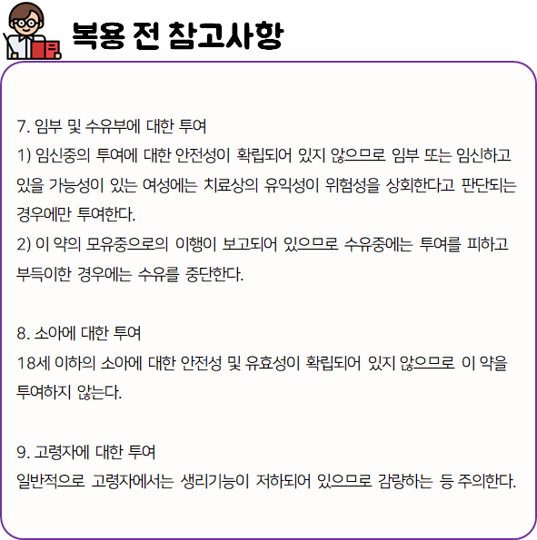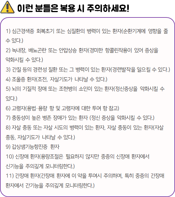 - 다음 환자는 복용 전 전문가 or 의사와 상담 후 복용하시길 바랍니다.