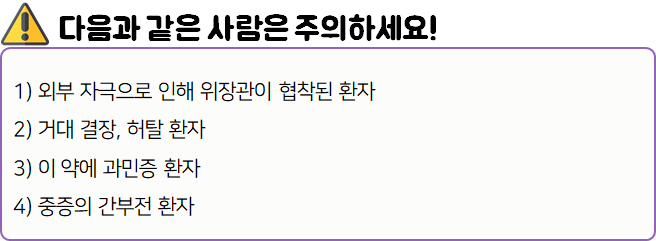 - 다음 환자는 복용 전 전문가 or 의사와 상담 후 복용하시기 바랍니다.