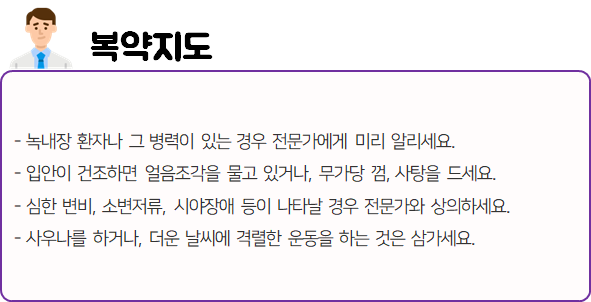 - 다음 환자는 복용 전 전문가 or 의사와 상담 후 복용하시길 바랍니다.
