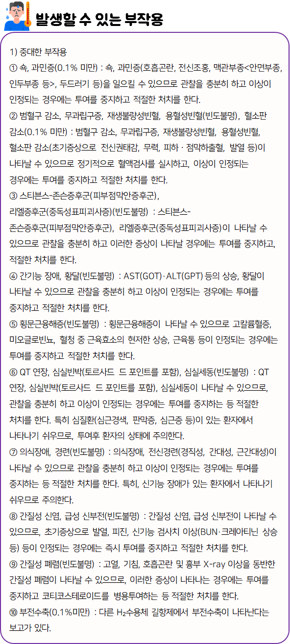 또한 복용 중 부작용 등의 이상반응이 나타날 시 즉시 복용을 멈추고, 전문가 or 의사와 상담하신 후에 복용 지속 여부를 결정 하시는 것이 좋습니다.