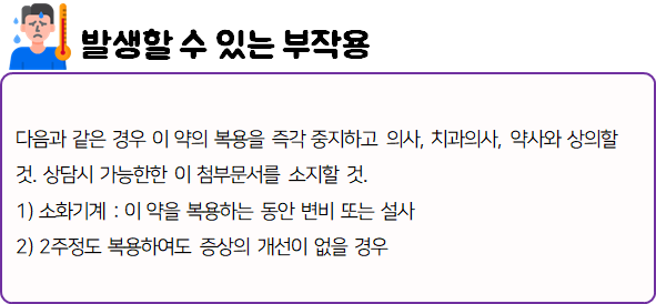 또한 혹시나 복용 중 부작용 등의 이상반응이 나타날 시 즉시 복용을 멈추고, 전문가 or 의사와 상담하신 후에 복용 지속 여부를 결정하시는 것이 좋습니다.