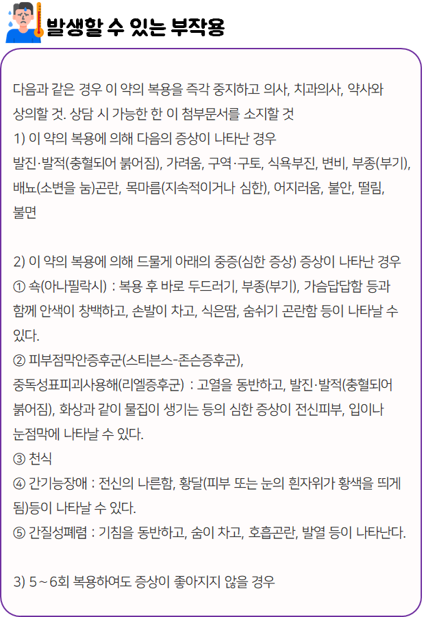 이 의약품은 부작용이나 주의사항 등을 반드시 확인하신 후 안전하게 드시기 바랍니다.