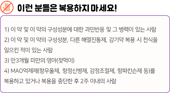 - 다음과 같은 사람은 복용 시 위험할 수 있으므로 복용하지 마시길 바랍니다.