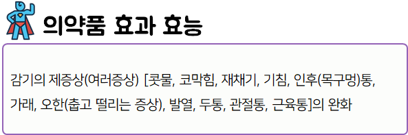 이 의약품은 오한, 발열, 콧물, 코막힘 등의 감기 증상을 개선하는 약이니 참고하시길 바랍니다.