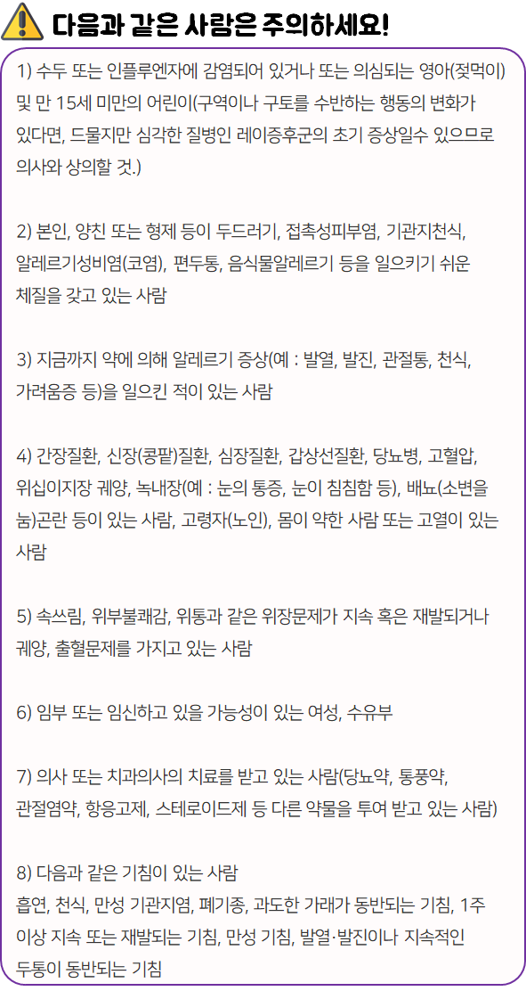- 다음과 같은 사람들은 의약품 복용 전 참고하시기 바랍니다.