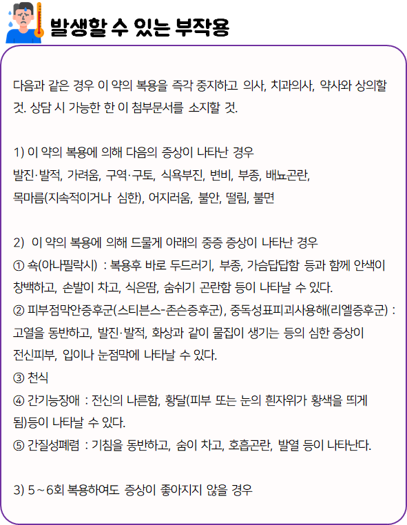 또한 복용 중 부작용 등의 이상반응이 나타날 시 즉시 복용을 멈추고, 전문가 or 의사와 상담하신 후에 복용 지속 여부를 결정하시는 것이 좋습니다.