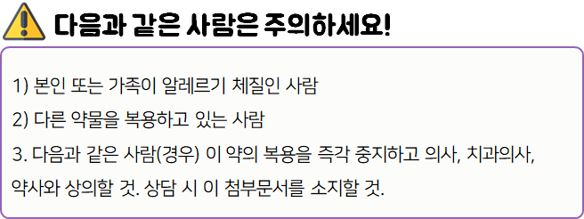 - 다음 환자는 복용 전 전문가 or 의사와 상담 후 복용하시기 바랍니다.