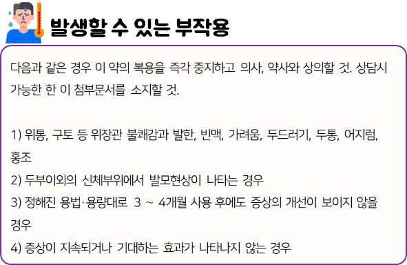 또한 복용 중 부작용 등의 이상반응이 나타날 시 즉시 복용을 멈추고, 전문가 or 의사와 상담하신 후에 복용 지속 여부를 결정하시는 것이 좋습니다.
