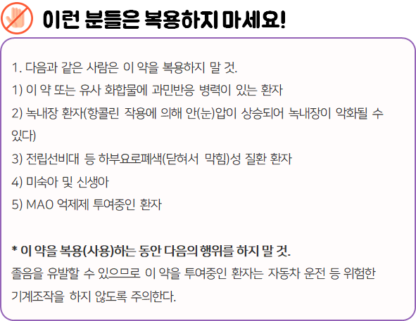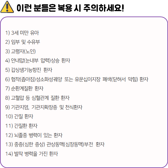 - 다음과 같은 사람은 복용 시 위험할 수 있으므로 복용하지 마시길 바랍니다.