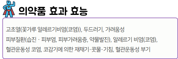 이 의약품은 알러지유발 물질의 작용을 차단하여 각종 알러지 증상을 개선하는 약이니 참고하시길 바랍니다.