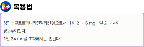 : Chlorpheniramine Maleate : 알러지 질환 (비염, 가려움증 등 포함) > 항히스타민제 > 제1세대 > Alkylamines