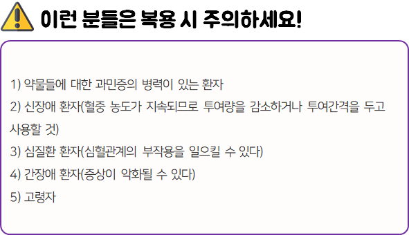 - 다음 환자는 복용 전 전문가 or 의사와 상담 후 복용하시길 바랍니다.