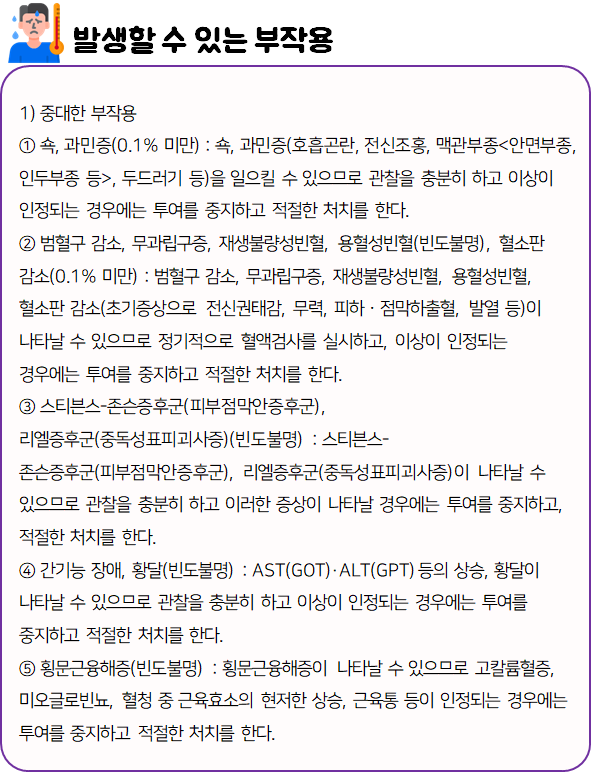 몸에 맞지 않는 의약품의 경우 크고 작은 이상 반응을 불러 일으킬 수 있으므로 드시기 전에 반드시 부작용이나 주의사항 등을 미리 확인하시길 바랍니다.
