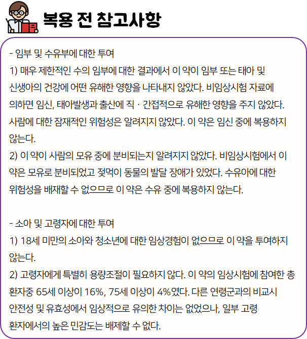 몸에 맞지 않는 의약품의 경우 크고 작은 이상 반응을 불러 일으킬 수 있으므로 드시기 전에 반드시 부작용이나 주의사항 등을 미리 확인하시기 바랍니다.