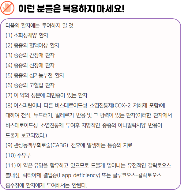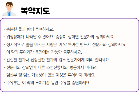 이 의약품은 염증을 완화시키고, 통증을 해소하는 진통 소염제이니 참고하시길 바랍니다.
