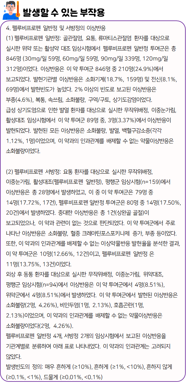 펠루비서방정을(를) 복용할 시 다음과 같은 부작용이 발생할 수 있으니 주의하시길 바랍니다.