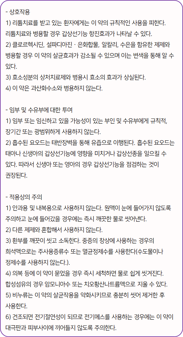 포비돈 요오드액 사용 시 주의해야 할 사항
