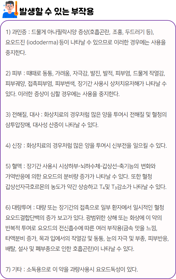 지금까지 포비돈 요오드액에 대해 자세히 알려드렸는데요, 이 의약품은 사용하시기 전에 발생할 수 있는 부작용이나 주의사항 등을 반드시 확인하신 후 사용 하시기 바랍니다.