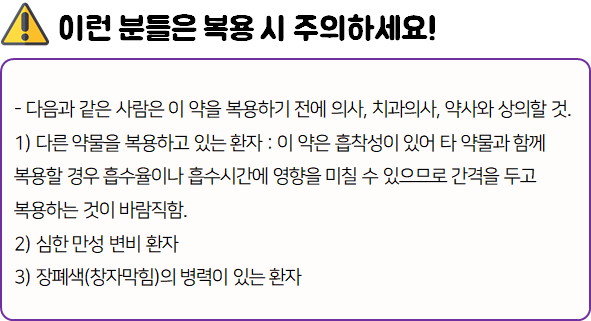 - 다음과 같은 사람들은 의약품 복용 전 참고하시길 바랍니다.