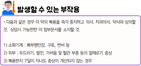 이 의약품은 부작용이나 주의사항 등을 반드시 확인하신 후 안전하게 드시기 바랍니다.