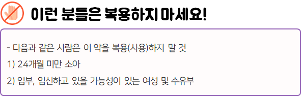 - 다음과 같은 사람은 복용 시 위험할 수 있으므로 복용하지 마시길 바랍니다.
