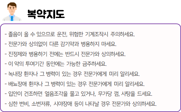 몸에 맞지 않는 의약품의 경우 크고 작은 이상 반응을 불러일으킬 수 있으므로 드시기 전에 반드시 부작용이나 주의사항 등을 미리 확인하시길 바랍니다.