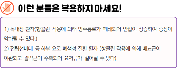 - 다음과 같은 사람들은 의약품 복용 전 참고하시길 바랍니다.