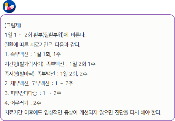 이 의약품은 항진균 작용을 나타냄으로써 곰팡이균(진균)에 의한 피부 감염증을 치료하는 약으로 무좀약으로 알려져 있으니 참고하시길 바랍니다.