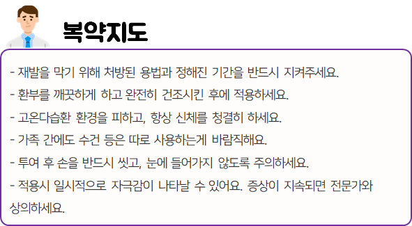 용법 · 용량 : 하루 1-2회, 질환 부위에 바르도록 합니다.
