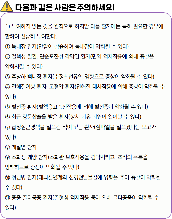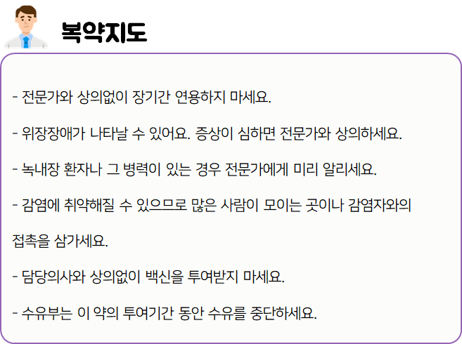 - 다음 환자는 복용 전 전문가 or 의사와 상담 후 복용하시기 바랍니다.