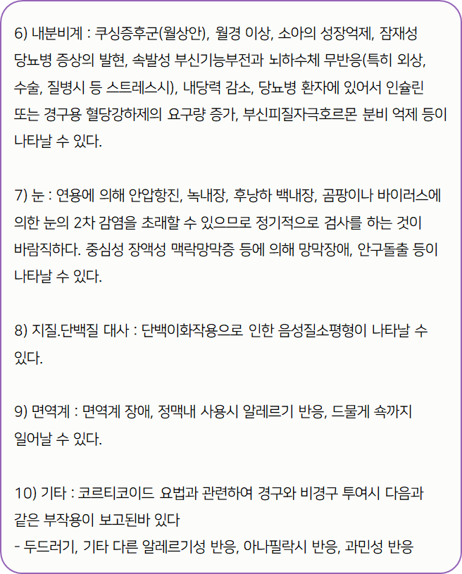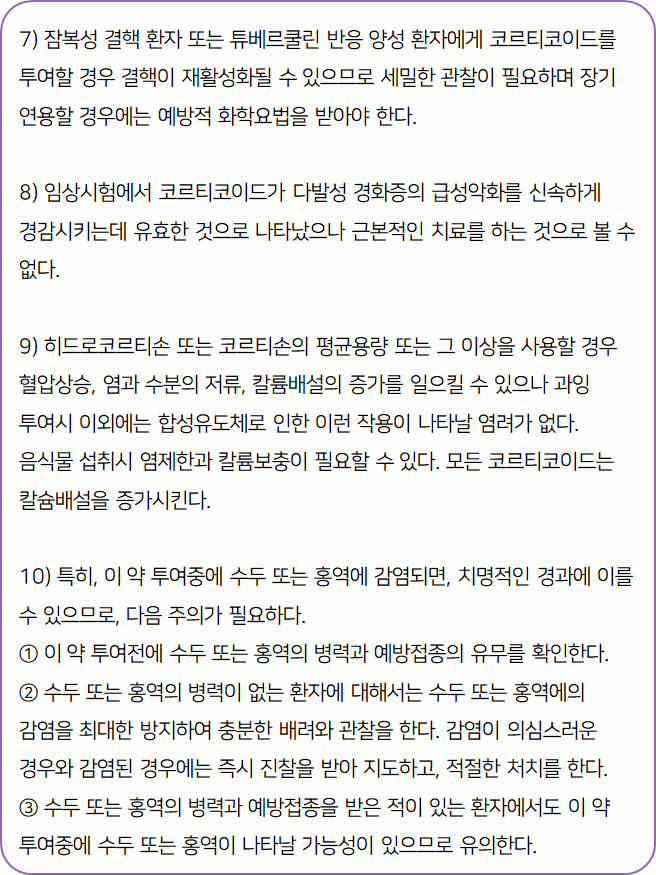 이 의약품은 면역억제 및 항염작용을 나타내는 호르몬제로 내분비장애 또는 각종 염증질환에 사용하는 약이니 참고하시기 바랍니다.