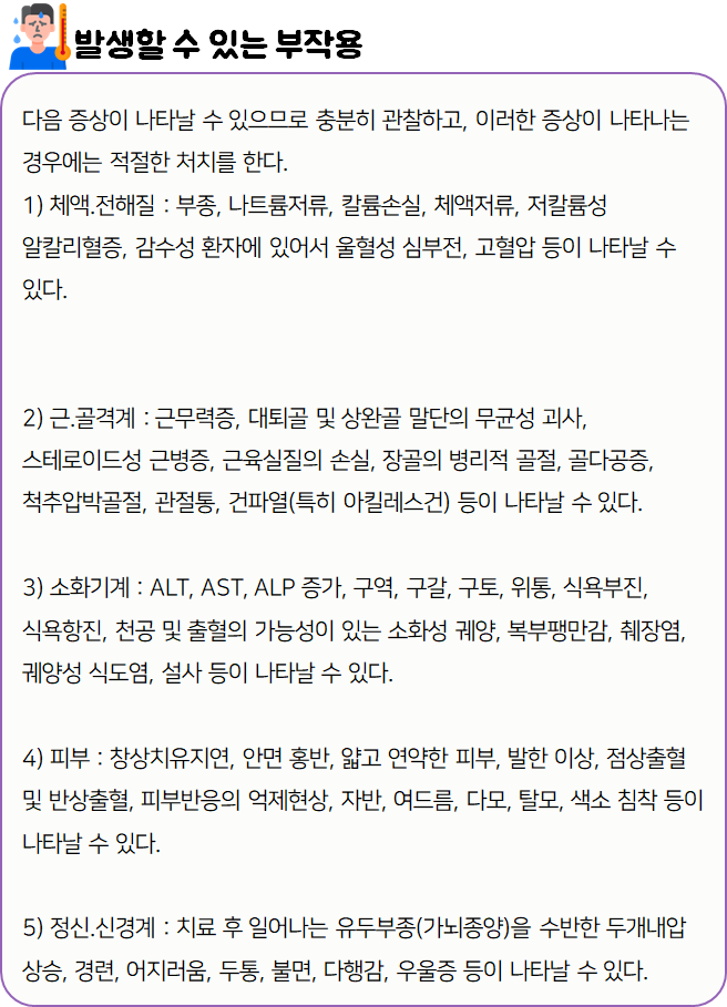 - 이 약을(를) 복용할 시 다음과 같은 부작용이 발생할 수 있으니 주의하시기 바랍니다.