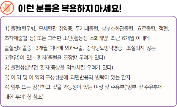 - 다음과 같은 사람은 복용 시 위험할 수 있으므로 복용하지 마시길 바랍니다.