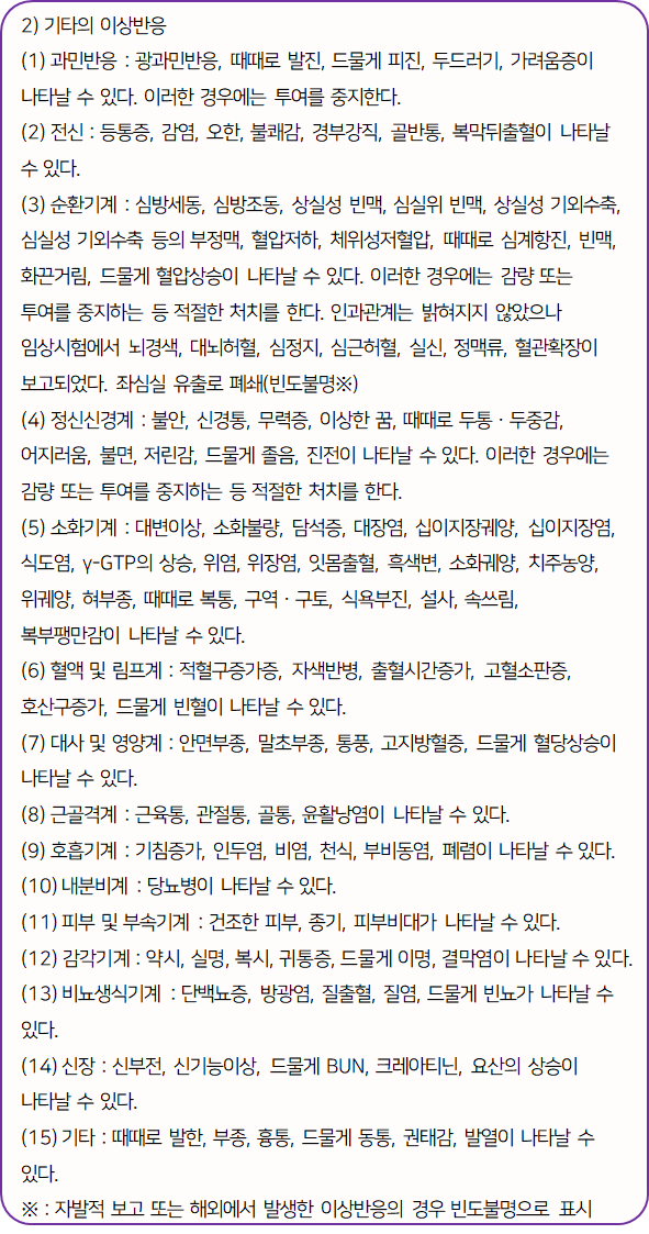 또한 복용 중 부작용이나 각종 이상 반응이 나타나면 즉시 복용을 멈추고, 전문가 혹은 의사와 상담하시어 복용량을 줄이거나 복용을 멈추시길 바랍니다.