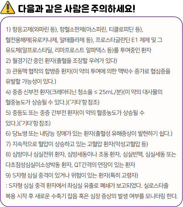 이 의약품은 '혈소판 응집을 억제하고, 혈관 확장작용을 나타내는 약'이니 참고하시길 바랍니다.