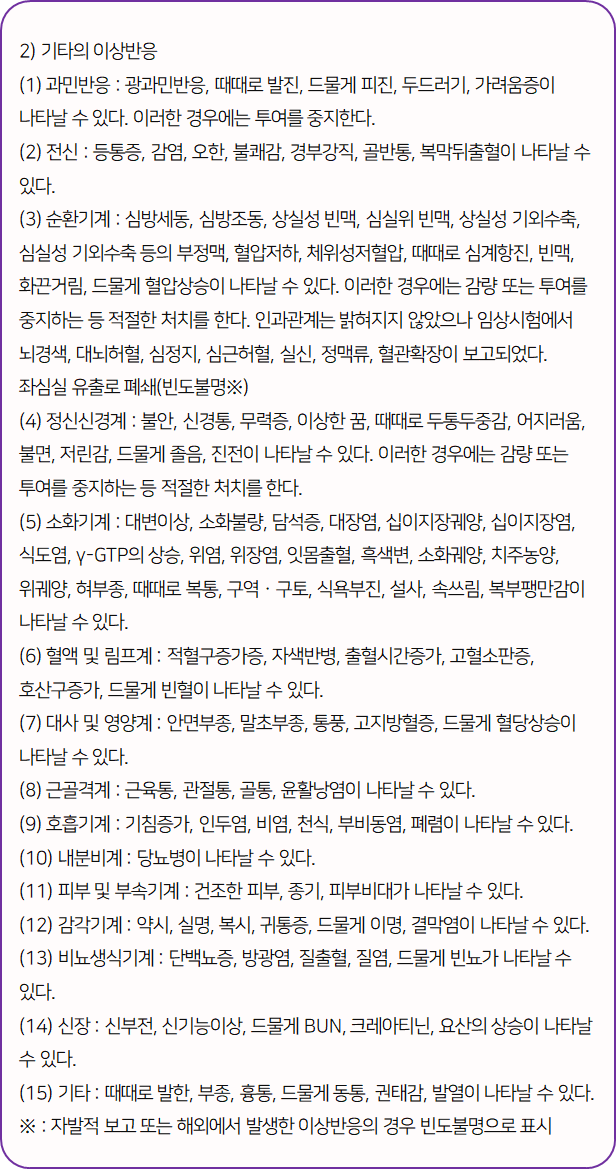몸에 맞지 않는 의약품의 경우 크고 작은 이상 반응을 불러 일으킬 수 있으므로 드시기 전에 반드시 부작용이나 주의사항 등을 미리 확인하시기 바랍니다.