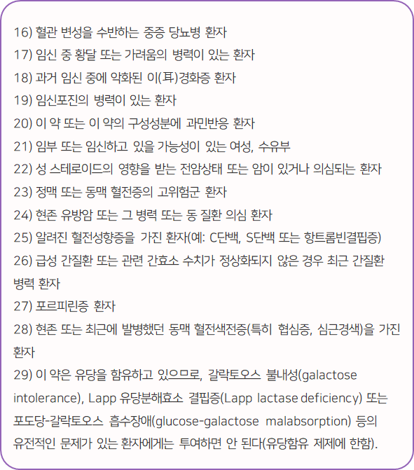 1) 임부 또는 임신하고 있을 가능성이 있는 여성에게는 이 약을 투여하지 않는다.