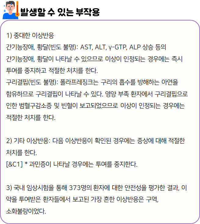- 이 약을(를) 복용할 시 다음과 같은 부작용이 발생할 수 있으니 주의하시기 바랍니다.