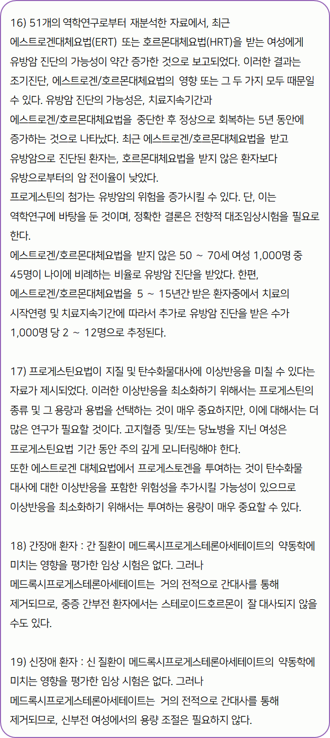: Medroxyprogesterone Acetate : 호르몬 & 대사관련 질환 > 성호르몬제제 > 여성호르몬 > 프로게스틴 (합성프로게스테론)