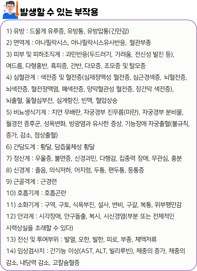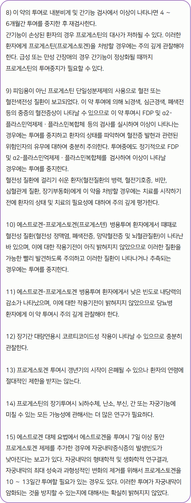 프로베라정 10mg을(를) 복용할 시 다음과 같은 부작용이 발생할 수 있으니 주의하시기 바랍니다.