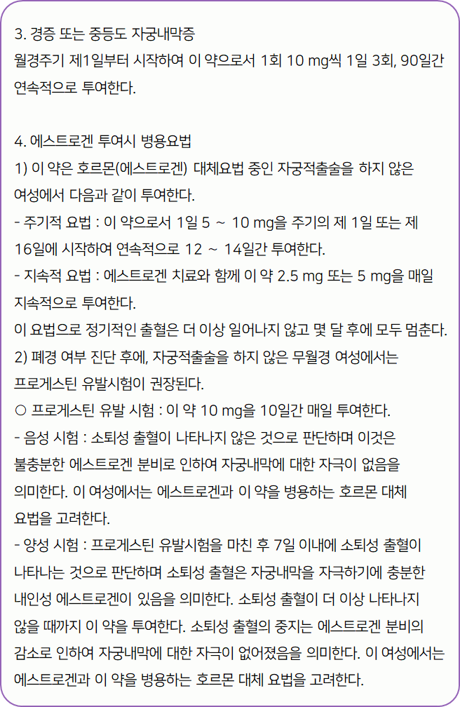 이 글은 프로베라정 10mg의 효과·효능부터 복용법, 부작용, 복용 시 주의사항에 대한 모든 정보를 포함하고 있으니 끝까지 꼼꼼하게 읽으셔서 안전하게 복용하시기 바랍니다.