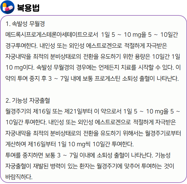 이 글은 프로베라정 10mg의 효과·효능부터 복용법, 부작용, 복용 시 주의사항에 대한 모든 정보를 포함하고 있으니 끝까지 꼼꼼하게 읽으셔서 안전하게 복용하시기 바랍니다.