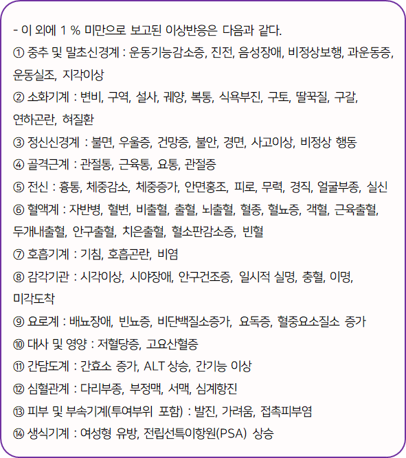 또한 복용 중 부작용 등의 이상반응이 나타날 시 즉시 복용을 멈추고, 전문가 or 의사와 상담하신 후에 복용 지속 여부를 결정 하시는 것이 좋습니다.